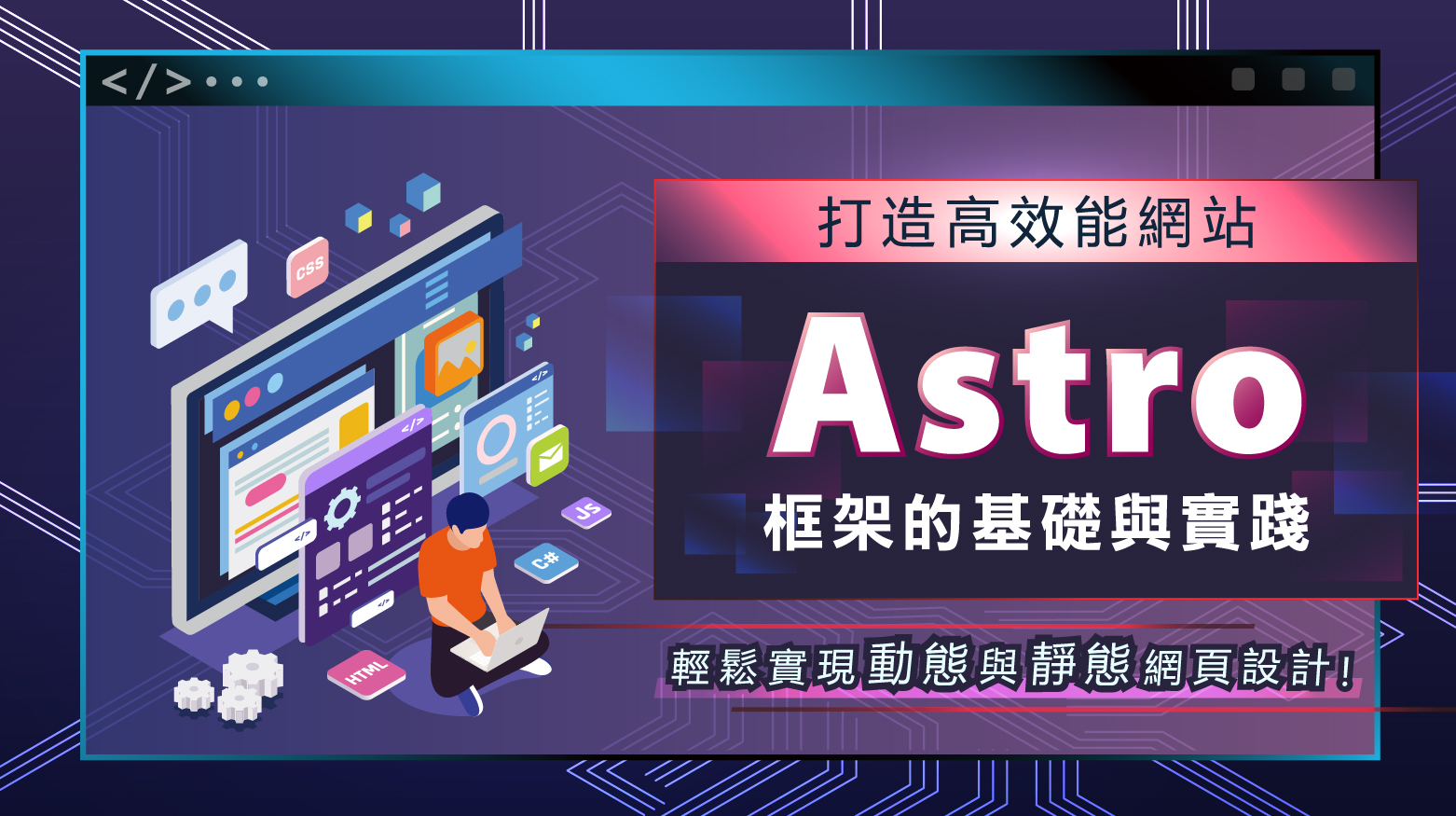 Astro 是一個新興且強大的 Web 框架,致力於讓開發者能夠快速構建現代化、高效能的網站。無論你是前端開發者還是設計師,Astro 的易用性與卓越性能都能為你帶來極致的開發體驗。本課程將帶領你深入了解Astro框架,從基礎部署到實際網站開發,讓你掌握最前沿的技術,打造出令人驚豔的網站。