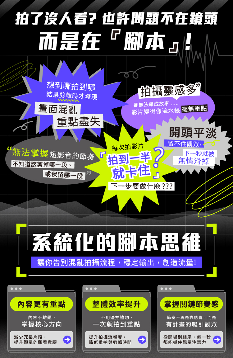 學習目標:讓你天馬行空的想法,打造真正能拍出來的短影音腳本!