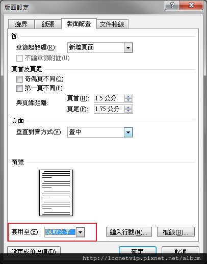 接著設定要套用的對象,還記得一開始我們所做的步驟?「選取要置中的文字」,所以套用對象就可馬上應用在選取文字上。