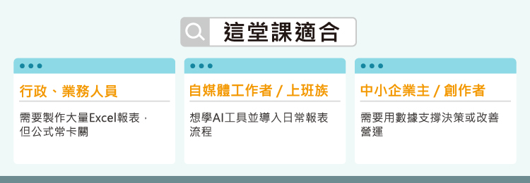 - AI × Excel 雙技能整合:不只教公式,還教你如何用 ChatGPT 自動化分析。