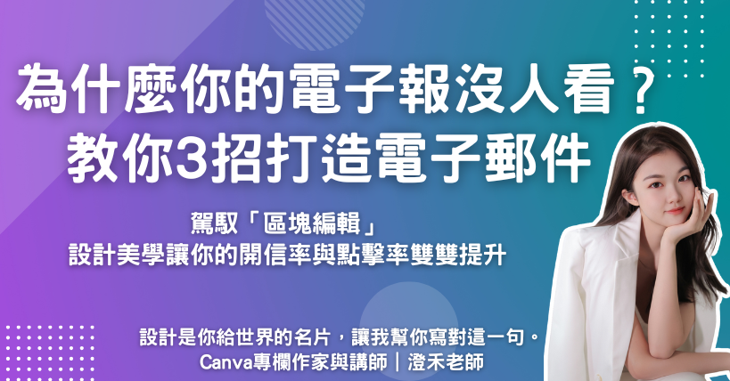 擔心電子報手機跑版、字體太小?澄禾老師教你掌握 Canva 「區塊式編輯」邏輯。從積木堆疊觀念到自製美型圖片按鈕,完整破解排版限制。學會正確開檔與串接流程,確保信件在各裝置完美呈現,有效提升你的 Email 行銷點擊率!
